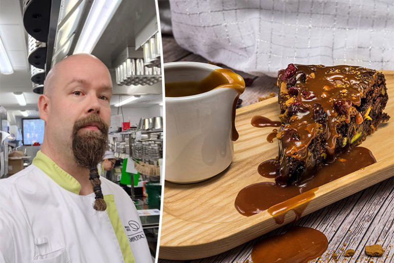 Ammattikeittiö Viime joulun hittiherkun tehnyt Ville Kivinen loihti uuden reseptin: näin valmistat pistaasi-suklaabrownien suurkeittiössä 9.12.2022 9.12.2022