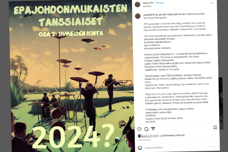 Tapahtumatuotanto Hämmentäväksi sekasotkuksi viime kesänä muuttunut Epikset-festari yrittää paluuta joukkorahoituksella 1.12.2023 1.12.2023